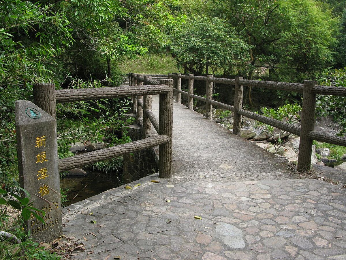 Bride's Pool (新娘潭, San Leung Taam) is a waterfall and plunge-pool in the Pat Sin Leng Country Park on the northeastern edge of the New Territories of Hong Kong. According to local Hakka tradition — attested in village oral history since at least the 1870s — a young bride from the nearby Plover Cove village was being carried in a traditional wedding sedan chair from her home village to her husband's village when her bearers, crossing the slippery rocks above the pool in rain, lost their footing and dropped the sedan chair (and the bride) into the deep plunge pool. She was unable to free herself from the heavy ceremonial garments and drowned.